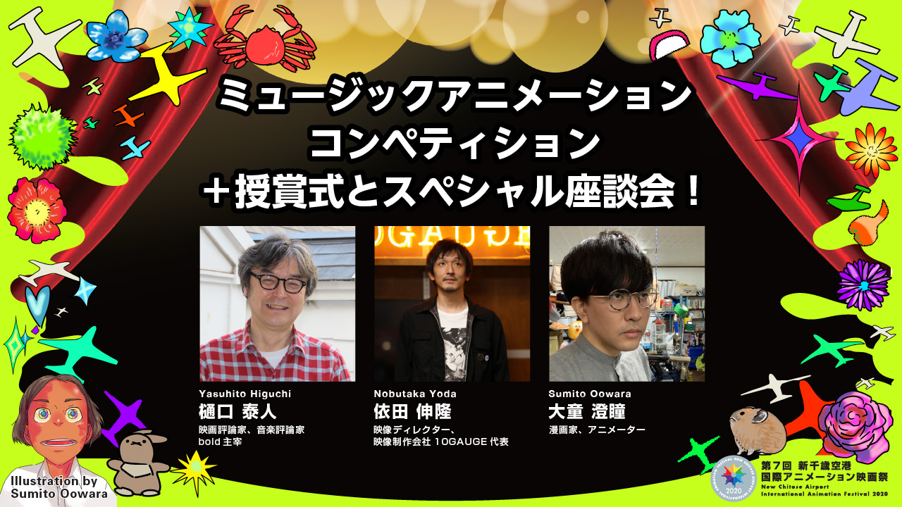NEW CHITOSE 2020 PROGRAMS 2020 SHORT FILM COMPETITION インターナショナルコンペティション1International Competition 1 インターナショナルコンペティション2International Competition 2 インターナショナルコンペティション3International Competition 3 インターナショナルコンペティション4International Competition 4 インターナショナルコンペティション・ファミリーInternational Competition Family 日本コンペティション 1Japan Competition 1 日本コンペティション 2Japan Competition 2 学生コンペティション 1Student Competition 1 学生コンペティション 2Student Competition 2 ミュージックアニメーションコンペティションMusic Animation Competition コンペティション短編部門展示作品 supported by 北海道ぐるっとシアターInternational and Japan Competitions: Installations and GIF supported by Hokkaido Gurutto Theater 北海道ぐるっとシアター (Hokkaido Gurutto Theater) 『雪ミク スカイタウン... FEATURE FILM COMPETITION Beauty Water 2020 | South Korea | 1:25:00 Kyung Hun CHO Bru & Boegie: The Movie 2019 | South Africa | 1:34:00 Mike Scott Empress of Darkness 2020 | Japan | 1:07:00 Nick DiLiberto Kill It and Leave this Town 2020 | Poland | 1:27:35 Mariusz WILCZYNSKI My Favorite War 2020 | Latvia | 1:17:27 Ilze BURKOVSKA JACOBSEN (Ilze Burkovska Jacobsen) SHOWCASE インターナショナルショーケースInternational Showcase NEW CHITOSE FOCUS 特集上映:没後10年、今 敏監督を偲ぶ 『パプリカ』Remembering Satoshi Kon: Paprika 今 敏監督が46歳の若さで逝去されてから、今年で10年。毎年日本各地で作品が上映され、今年のアニー賞... 特集上映 没後10年、今 敏監督を偲ぶ『東京ゴッドファーザーズ』Yoko Yuki presents a special feature film: Our Experiments of Observation: Fantastic Mixture of Paradises 今 敏監督が46歳の若さで逝去されてから、今年で10年。毎年日本各地で作品が上映され、今年のアニー賞... 特集上映 没後10年、今 敏監督を偲ぶ『パーフェクト ブルー』Remebering Satoshi Kon: Perfect Blue 今 敏監督が46歳の若さで逝去されてから、今年で10年。毎年日本各地で作品が上映され、今年のアニー賞... 特集上映 没後10年、今 敏監督を偲ぶ『千年女優』Remembering Satoshi Kon Millenial Actress 今 敏監督が46歳の若さで逝去されてから、今年で10年。毎年日本各地で作品が上映され、今年のアニー賞... 幸洋子特別長編『わたくしたちの観察実験~ファンタスティックまぜまぜパラダイス~』Yoko Yuki presents a special feature film: Our Experiments of Observation: Fantastic Mixture of Paradises 『ズドラーストヴィーチェ!』第2回新千歳空港国際アニメーション映画祭の日本グランプリを獲得した幸洋子... 韓国インディーズ・アニメーション特集 2020 Part1Korean Independent Animation Special 2020 Part1 今年は韓国のインディーズアニメーションを大特集!短編作品特集を2プログラムのほか、Web漫画やWeb... 韓国インディーズ・アニメーション特集 2020 Part2Korean Independent Animation Special 2020 Part2 今年は韓国のインディーズアニメーションを大特集!短編作品特集を2プログラムのほか、Web漫画やWeb... ハン・ジウォン監督マスターピースMasterpiece: HAN Ji-won Web漫画やWebアニメーションシリーズが人気のハン・ジウォン監督特集 台湾アニカップベストセレクション2020Best Selection of Taiwan Ani-Cup 2020 台湾で若きオリジナルアニメーション作品を支えた重要な舞台、「台湾アニカップ」(主催:台湾未来映像発展... 北海道現代アニメーション総進撃!2020Animation Focus: Hokkaido Showcase 2014年から毎年開催している、北海道在住または出身作家による最新アニメーション作品特集「北海道現代... TALK & LECTURE (Live Streamed Programs) ミュージックアニメーションコンペティション授賞式&スペシャル座談会Music Animation Competition Awards & Talk Sesson トークセッション 片渕須直「今年の長編作品・学生作品を語る」Talk Session: Sunao Katabuchi on Feature Films and Student Films This Year in Competition 今年の映画祭の長編部門、そして学生コンペティションの審査員のひとり片渕須直氏が、審査で印象に残った作... トークセッション「チェ・ユジンと話す、韓国インディペンデントの今」Talk Session: Yu-jin Choi on Korean Independent Animation 韓国インディペンデントアニメーション協会事務局長にして、韓国を代表するアニメーション映画祭「Indi... トークセッション:幸洋子「アニメーションで人生を記録しつづけること」Talk Session: Yoko Yuki on How to Record Her Own Life with Animation 幸洋子は、様々な手法と発表手段によって、個性的な短編アニメーション作品を精力的に発表しつづけているが... トークセッション 田坂博子「“映像”におけるアニメーション、その現在」Talk Session: Hiroko Tasaka on the Position of Animation in Recent Visual Art and Culture アニメーションという表現技法は、いま、「映像」もしくはビジュアル・アート全般においてどのような位置を... トークセッション 日本コンペティション『ごん』八代健志氏 × 『DINO!』細川晋氏 「いま日本で人形アニメーションを作ること」Talk Session: How to Make Puppet Animation in Japan Now: Takeshi Yashiro (GON,THE LITTLE FOX) and Shin Hosokawa (DINO!) 今年の日本コンペティションには、注目度高い2つの人形